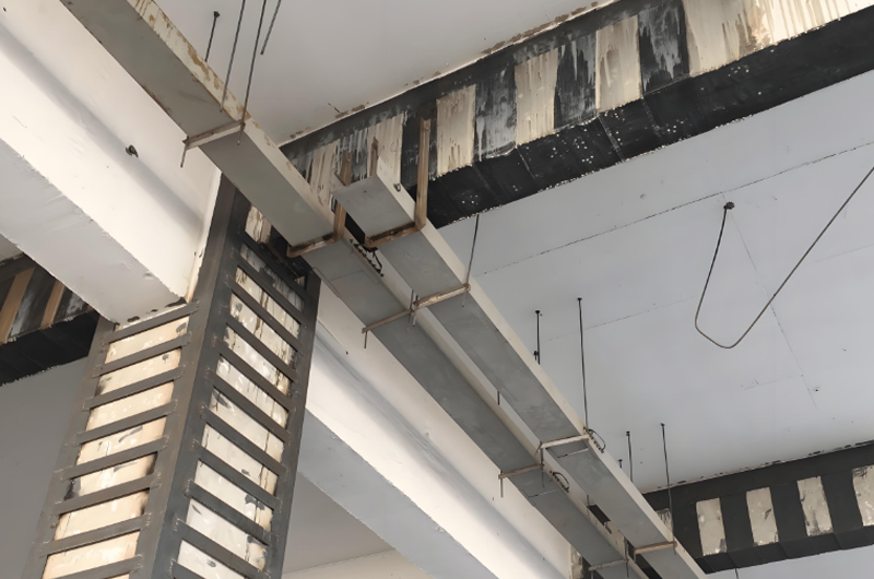 方法:通過配套碳纖維膠將碳纖維片材粘貼于構(gòu)件表面,使碳纖維片材承受拉力,并與混凝土變形協(xié)調(diào),共同受力。